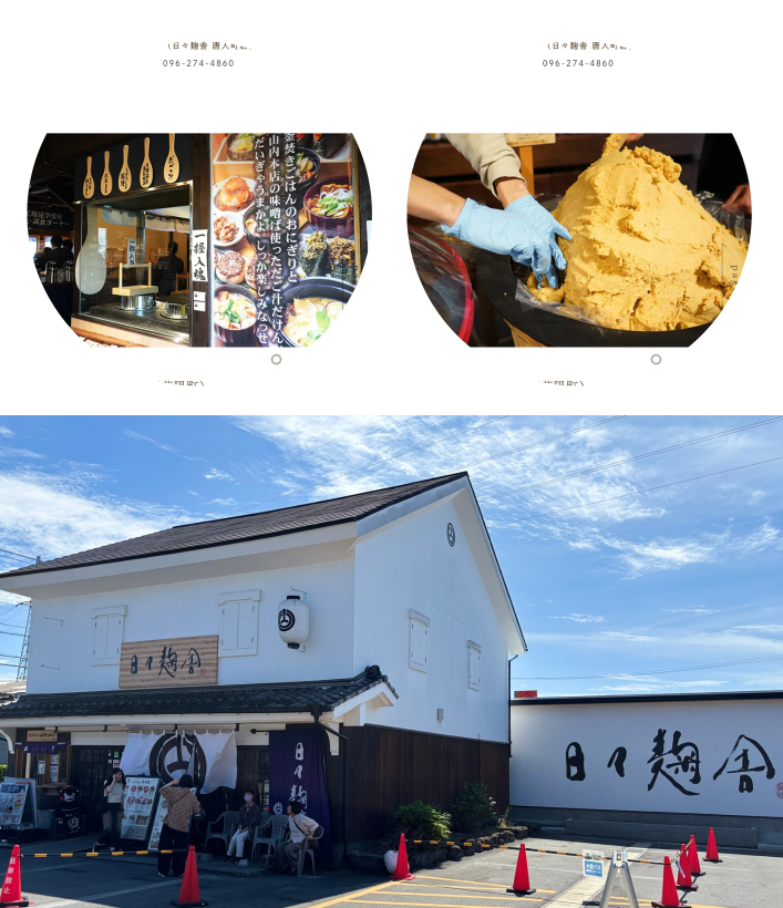 先日、熊本県菊陽町にある『日々麹舎』という創業270年のお味噌とお醤油にこだわったお店に行ってきました。こちらには飲食店も併設されており、メニューのごちそう膳が食べたくて食べたくて。ですがどうしても電話が繋がらず、行ってはみたのもも1時間待ち。子供もいたので残念ですが断念しました^^;具で溢れたおにぎりや選べる味のだご汁・味噌唐揚げ・醤油みたらし団子などなど、食したいものが沢山あったのでその後の食欲を抑えるのに苦労しました。次回の楽しみにとっておきます☆