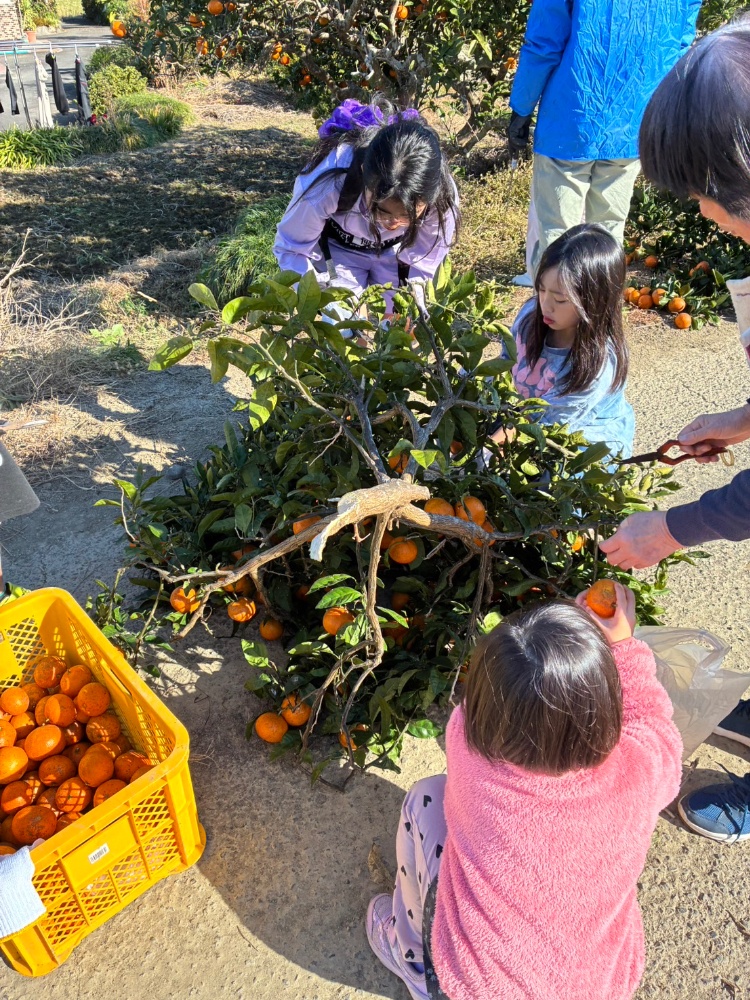 義父から紹介されて自宅そばのみかん狩りスポットへ妹夫婦の子供たちも一緒に行ってきました!現場へ到着するとハサミも使えるようになった子供たちは手袋もして準備万端で臨みました。沢山の大きく実ったツヤツヤのみかん♪ヘタのカットは中々力が必要でしたが慣れて来ると上手にスムーズに取れていました。個数制限はないとの事、これでもか!の量を収穫しました。取れたてのみかんをいざ実食!薄皮をむくと柑橘オレンジの爽快な良い香り、口に頬張るとジューシーで濃厚な甘み、柑橘の大トロのような味わいでみんないい顔をしながら大満足な様子でした♡しばらくはみかんに困らない生活を送れそうです(^.^)